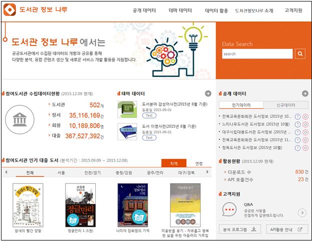 문화체육관광부(장관 김종덕, 이하 문체부)는 전국 282개 공공도서관의 데이터를 수집·저장·분석하여 사서, 연구자, 일반 국민들에게 맞춤 서비스를 제공하는 ‘도서관 정보 나루’와 과학적인 도서관 경영을 지원하는 ‘사서의사결정지원시스템’ 서비스를 2016년 1월부터 한국과학기술정보연구원(KISTI, 원장 한선화)과 함께 운영한다고 밝혔다.